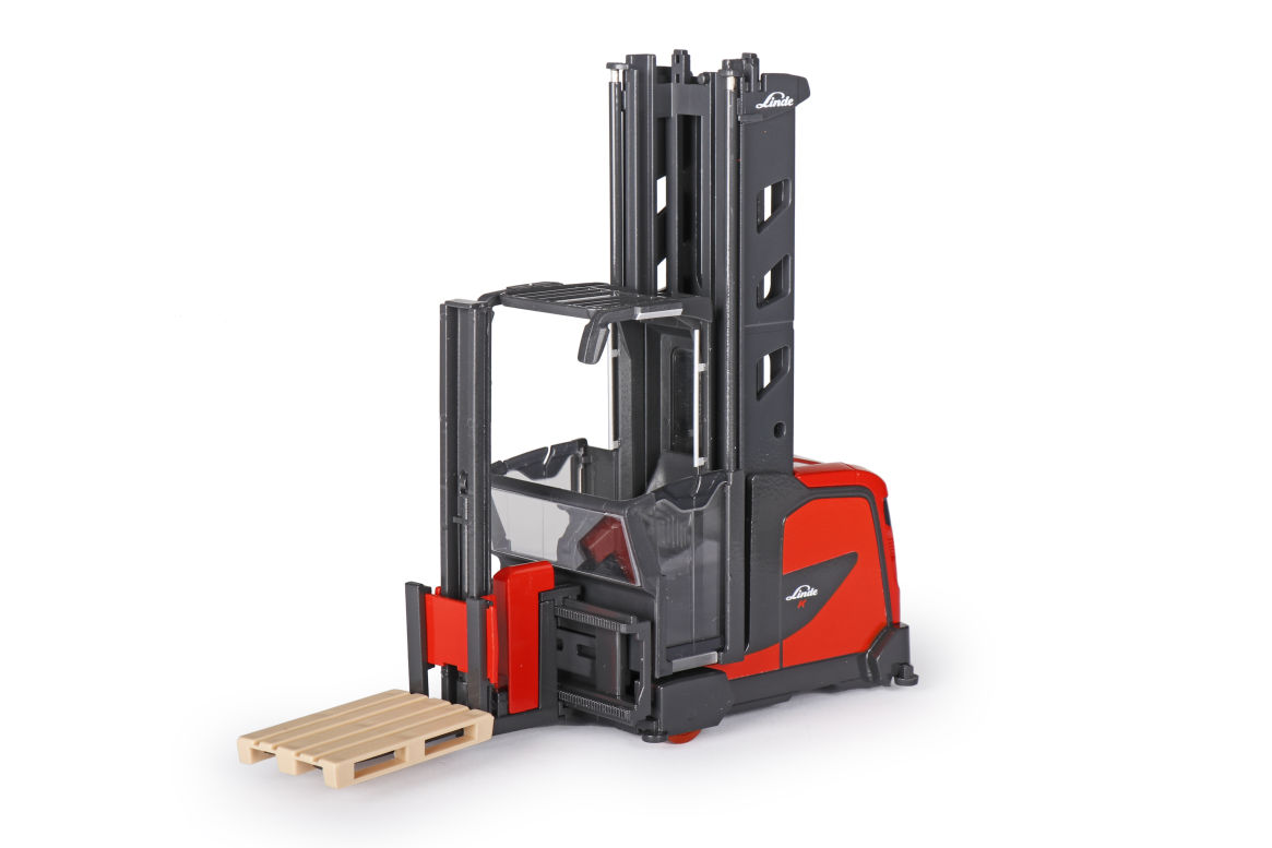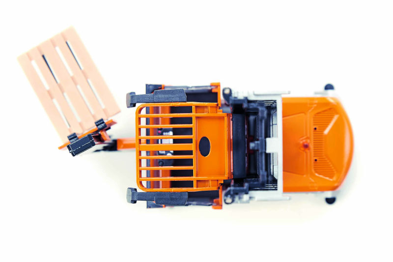 - 可轉向後輪 - 伸縮桅杆 - 帶轉向柱的駕駛員平台,保護車頂 - 座椅折疊顯示 - 桅杆可以在導向車上橫向移動 - 單叉高度可調的前叉車 - 發動機艙與電池室再現