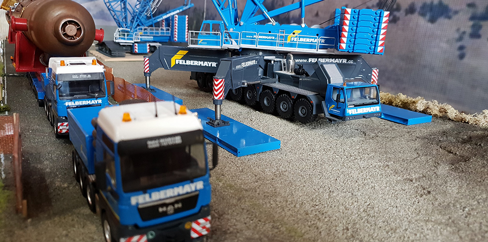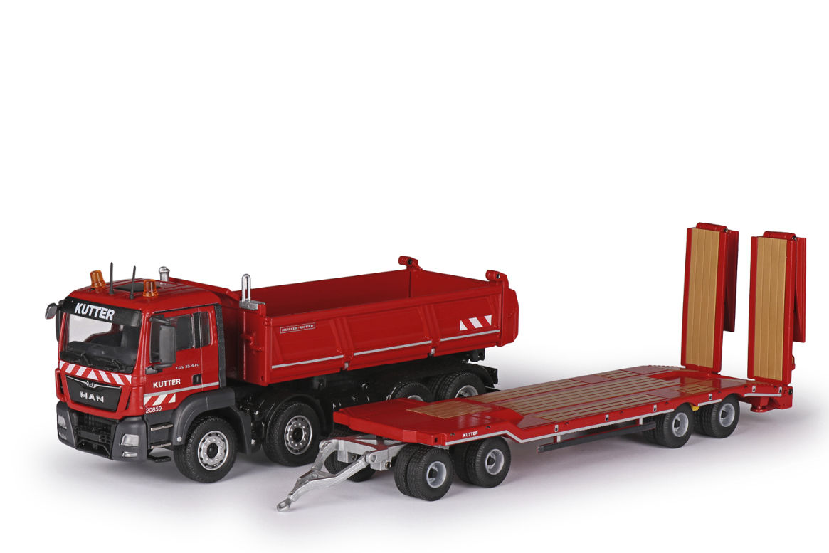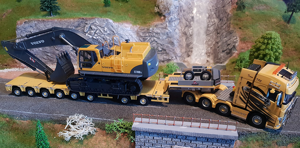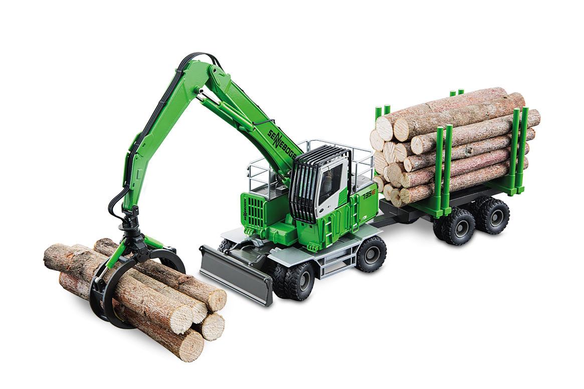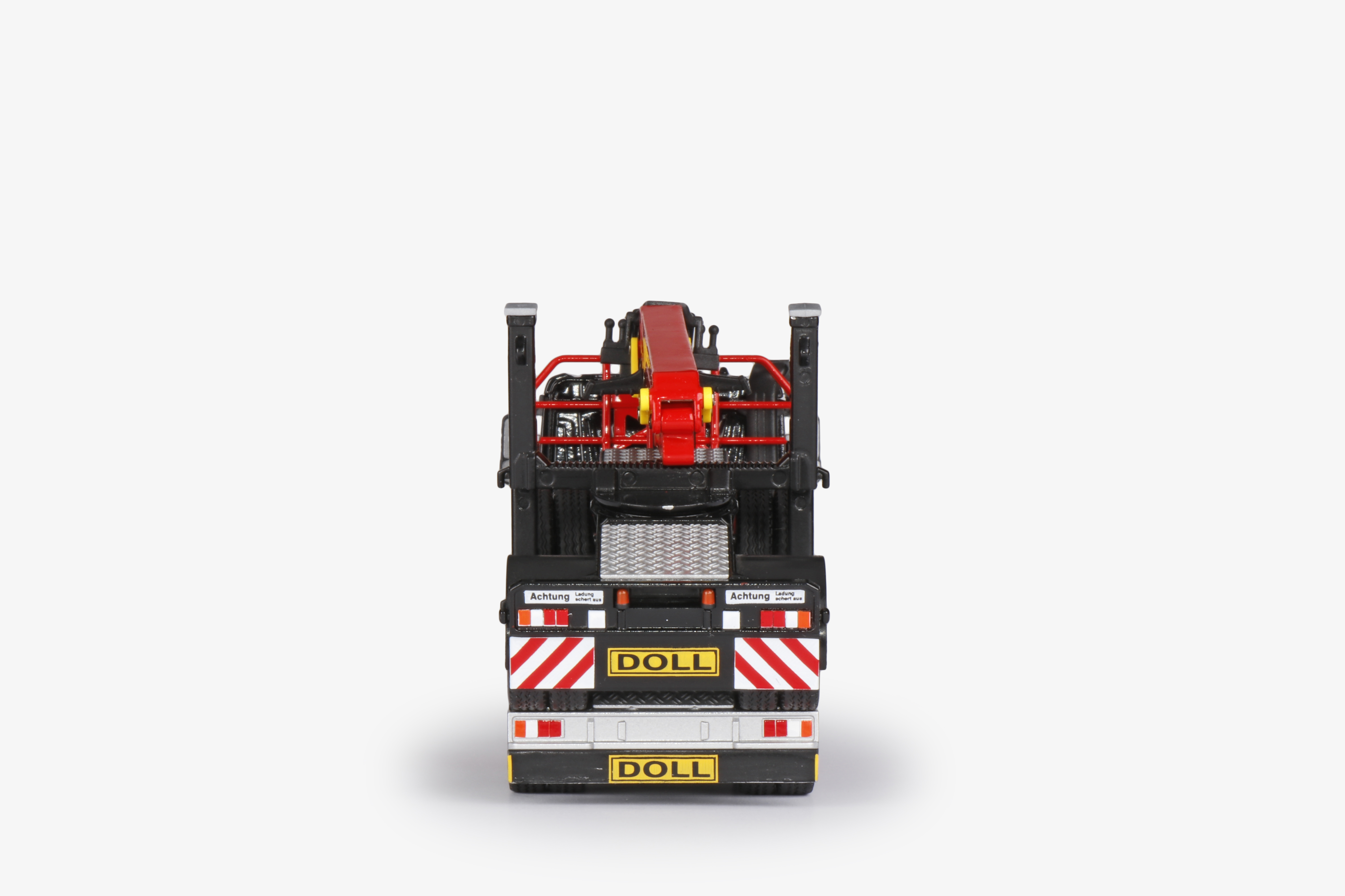- 裝載隨車伸縮吊臂 - 可轉向的前軸- 帶內部配件的駕駛室- 安裝了許多精細的附件- 可收放的支撐架- 附長原木(實木)和綁紮帶- DOLL拖車(自動轉向)可在牽引車上充電- 自組裝的外後視鏡和天線- 精細印刷的各種標誌。